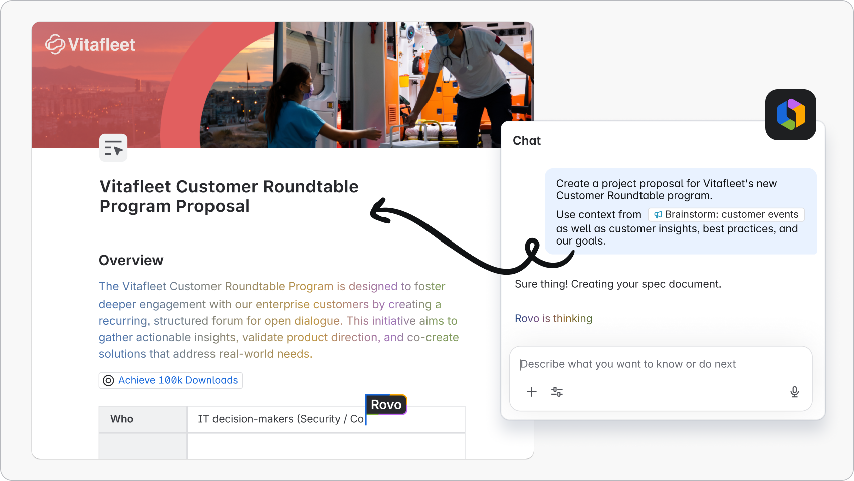 From draft to polish and everything in between, Rovo helps you move through project phases without the grunt work.